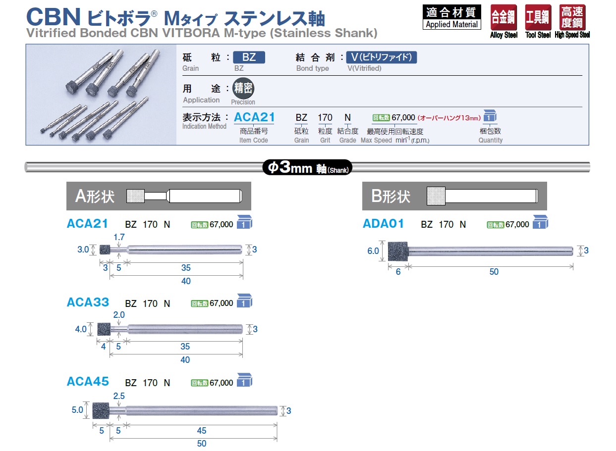 FSK Vitrified Bonded CBN Vitbora M-Type (Stainless Shank)