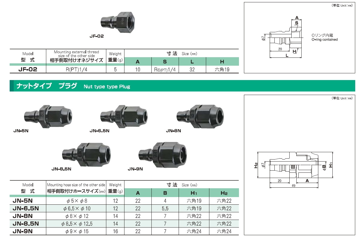 JT-02, JT-03, JT-04, JS-02, JS-03, JS-04, JF-02, JN-5N, JN-6.5N, JN-8N, JN-8.5N, JN-9N