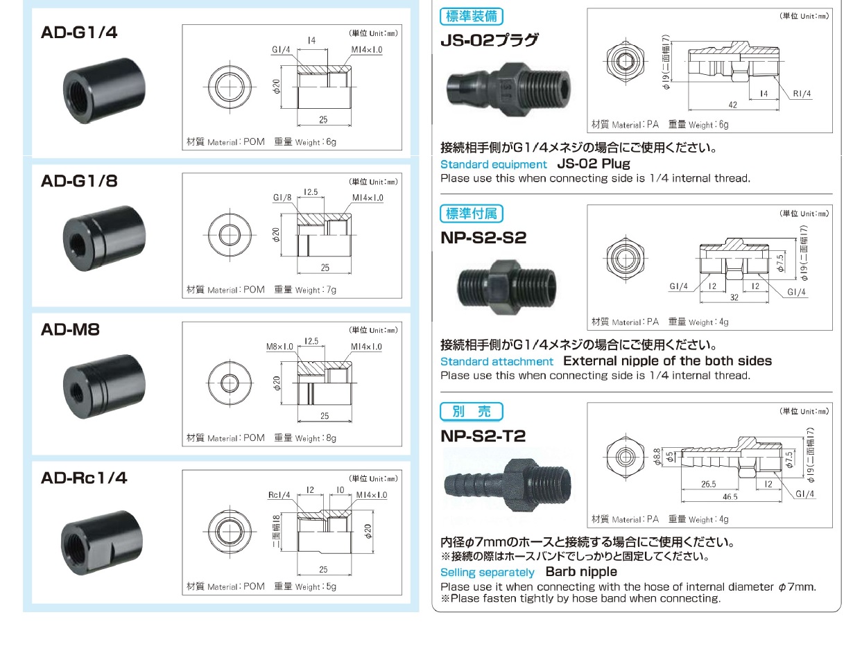 TD-200HB, TD-200HR, EJ-F0100, AD-RC1/4, TF-10N, ARS-JP, TD-100H, TU-100H, TD-30H, AD-G1/8, NP-S2-S2, AD-M8, NP-S2-T2