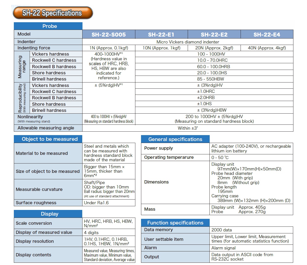 Code : SH-22, SH-22-S005, SH-22-E1, SH-22-E2, SH-22-E4, RS-232C Brand : JFE